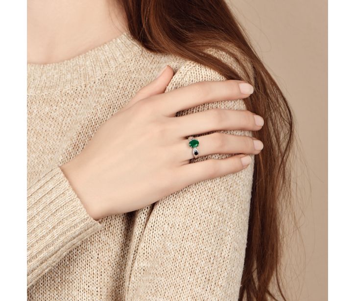 Серебряное кольцо с зеленым агатом и фианитами (1503/1р-GRAG)