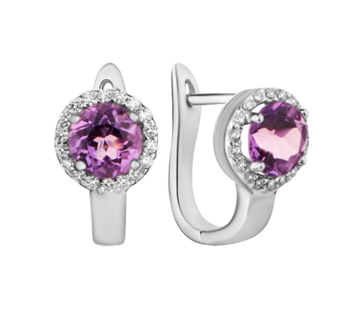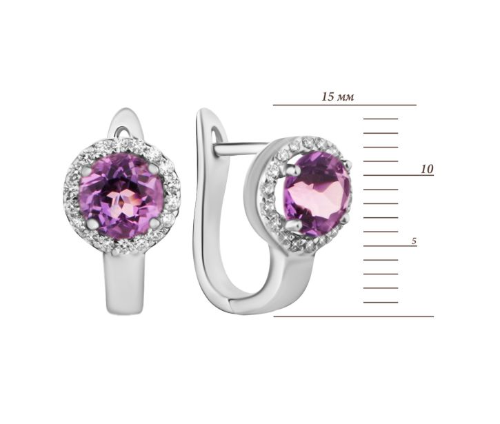 Серебряные серьги с аметистом и фианитами (SE18024 с ам)