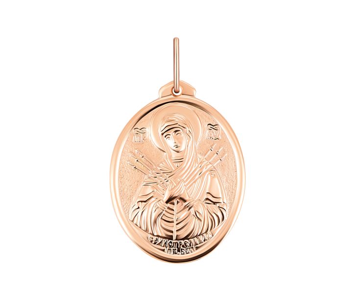 Подвеска-иконка Божией Матери «Семистрельная» из красного золота 585 пробы