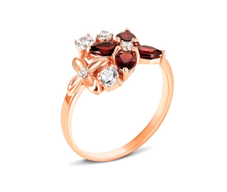 Золотое кольцо с гранатом и фианитами (к661пр)