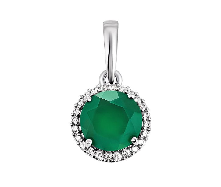 Срібна підвіска з зеленим агатом і фіанітами Золотий Вік (3896р-GRAG)